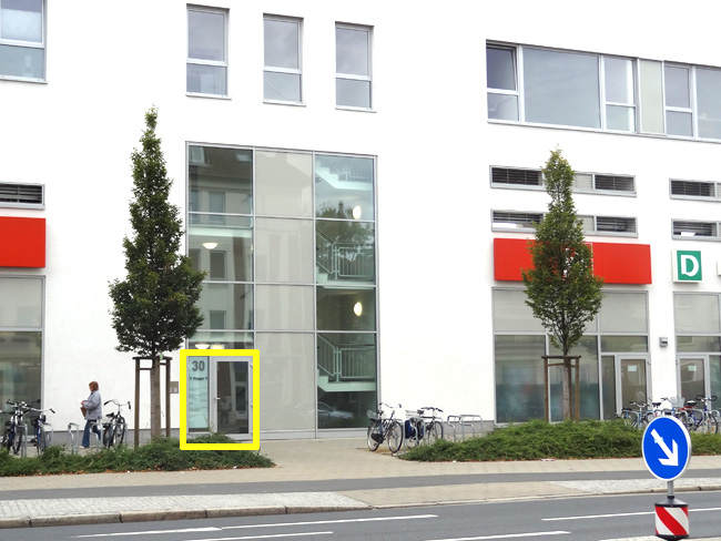 Treppenhauseingang Celler Straße 30, Zugang zum Fahrstuhl